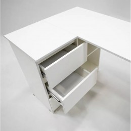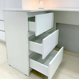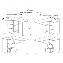 Стол Мори МС 16 укомплектован выдвижным ящиком на роликовых направляющих. Преимущество данной модели - универсальная сборка, ящики могут располагаться, как с левой стороны, так и с правой. Предусмотренный между фасадами ящика зазор, а также утопленные в глубь корпуса декоративные планки, позволяют удобно браться за фасад при его открывании. Корпус и фасад выполнены из ЛДСП, толщиной 16 мм.