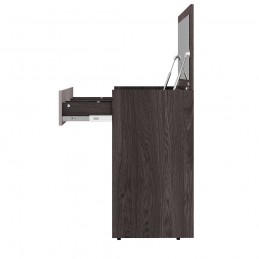 Настоящим украшением спальни станет уникальный косметический столик «Моника» с выдвижным ящиком на шариковых направляющих и откидной крышкой столешницы, оборудованной зеркалом с еврокромкой.