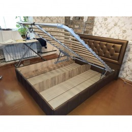 Характеристики: кровать оснащена ортопедическим основанием с подъёмным механизмом.