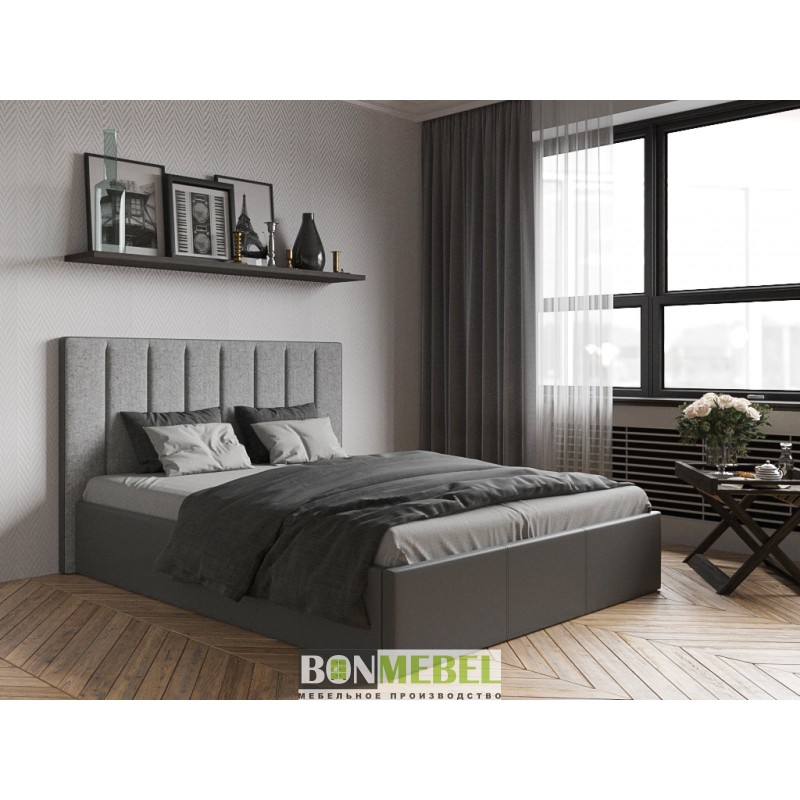 Обивка кровати Прага выполнена из мягкой и приятной на ощупь ткани и кожзама. Вертикальные линии визуально увеличат высоту Вашей комнаты. Кровать оснащена подъёмным механизмом с газовыми амортизаторами и имеет два больших короба для хранения постельного белья.