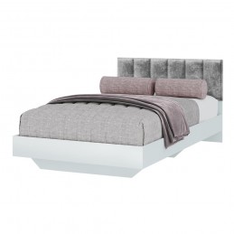 • мягкое изголовье, обтянутое велюром серого цвета, делает модель очень уютной и комфортной.