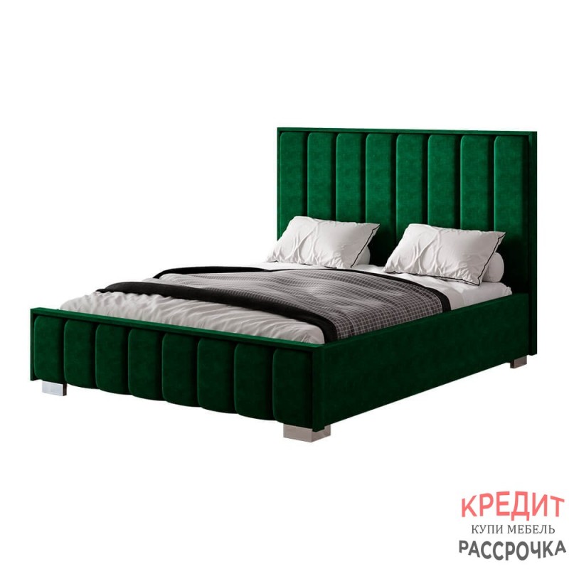 Невероятно стильная кровать Мирабель – отличный выбор для современной спальни: - изделие прекрасно будет смотреться в любом интерьере за счет велюра цвета "изумруд", используемого в дизайне; - корпус кровати изготовлен из высококачественной ЛДСП; - мягкое изголовье имеет вертикальные стяжки, что придает модели элегантности. Основание для кровати приобретается отдельно, на выбор: ортопедическое основание с подъёмным механизмом, настил ДСП/ЛДСП или реечный настил. Короб для размещения белья предусмотрен в комплектации кровати.