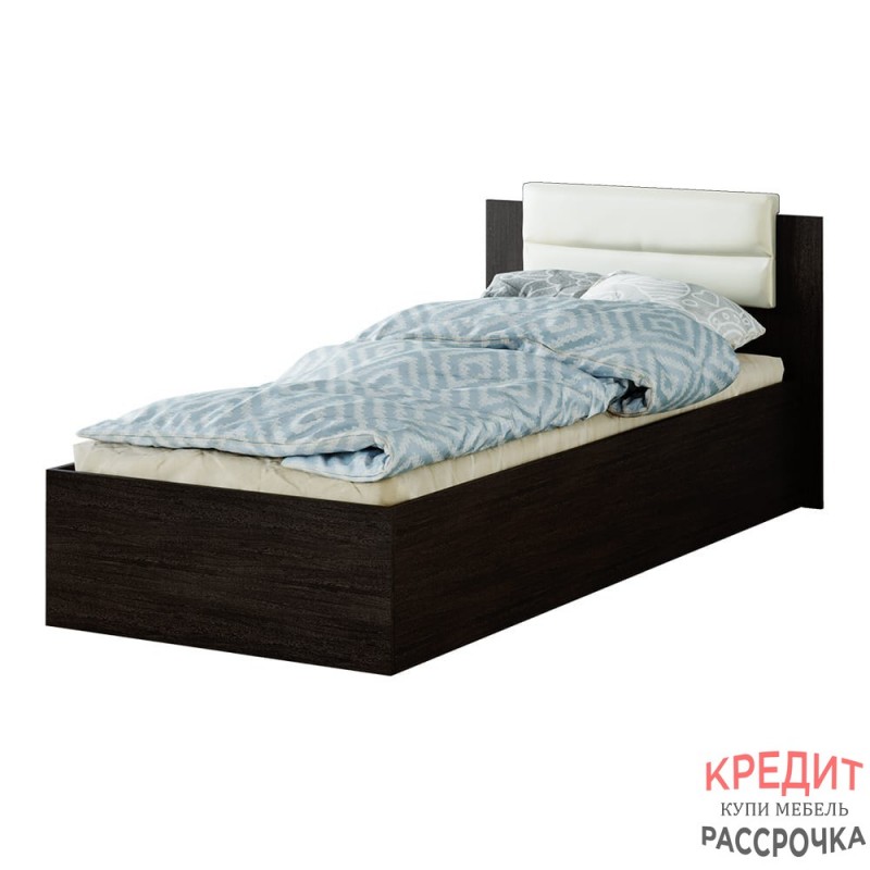 Односпальная кровать "Фиеста" выполнена из высококачественной ЛДСП в цвете "венге". Изголовье имеет мягкую часть из экокожи светло-бежевого цвета. Кровать не предполагает наличие ножек, а значит избавит вас от скопления пыли под ней. Модель комплектуется настилом ЛДСП, установка других оснований не предусмотрена.