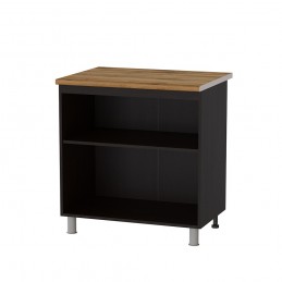 Напольный шкаф с распашными фасадами Плейона в цвете венге/дуб делано. Регулируемые ножки придают конструкции устойчивость.
