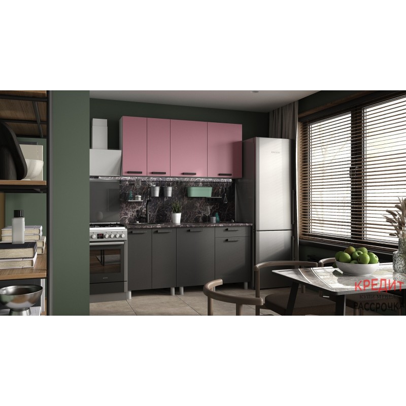 Кухня Осло, 1,6м Карбон Сакура/Карбон Вулкан