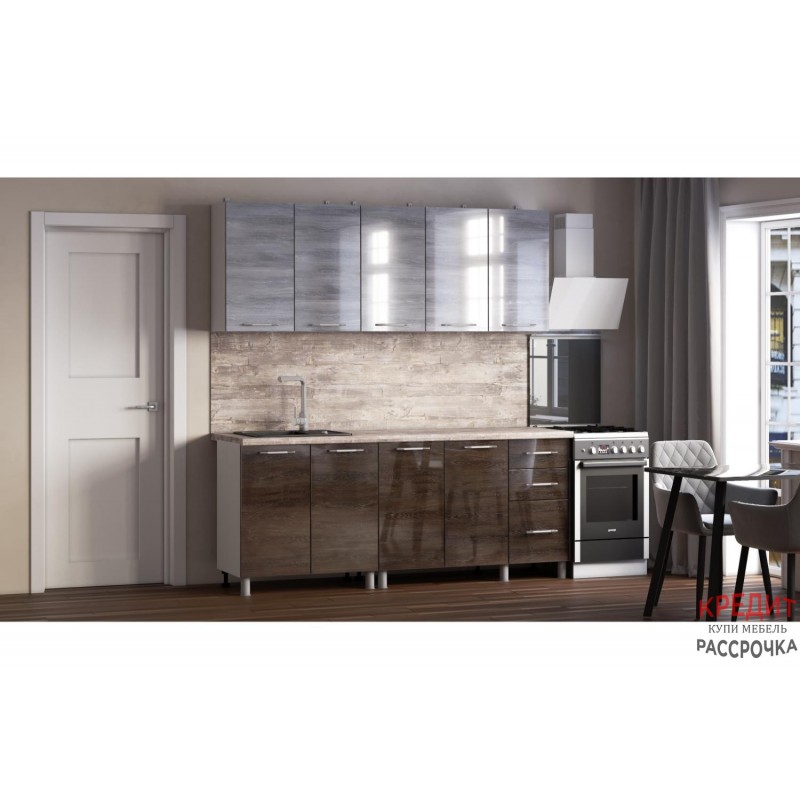 Кухня Танго 2м., Шале серебро, Шале дуб мореный