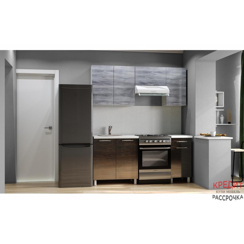Кухня Танго 1.8м., с окапом Шале серебро, Шале дуб мореный