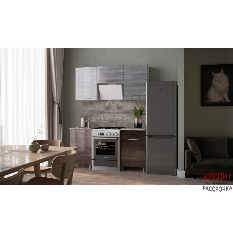 Кухня Танго 1.6м., с окапом Шале серебро, Шале дуб мореный