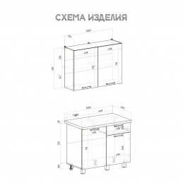 Нижний модуль: 1ОР2, высота - 858 мм (без опор), глубина - 600 мм.