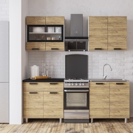 Фактурный декор «Крафт» имеет свою природную естественность и грацию, а черные элементы создают яркие акценты, привлекающие к себе внимание. Четкие геометрические линии, массивные ручки под металл и характерные древесному срезу годовые кольца на фасадах, создают яркие акценты, привлекают своим изяществом и неповторимостью.