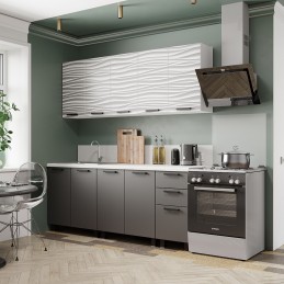 Габаритные размеры композиции нижних модулей с учётом столешницы: ширина: 2000 мм, высота: 846 мм, глубина: 600 мм.
