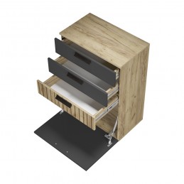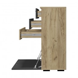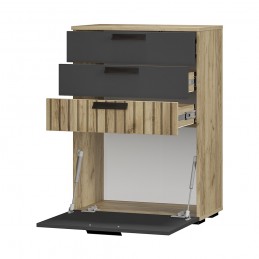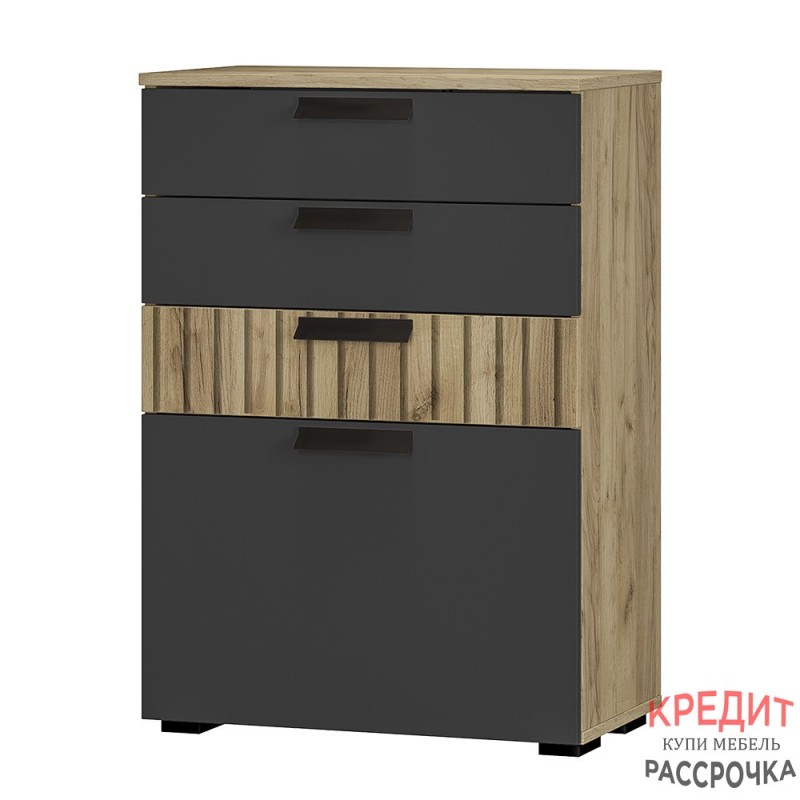 Гостиная "Мишель" - это модель с универсальной конструкцией для современного дома. Фасады в глубоком оттенке "графит" будут отлично контрастировать со стенами в нейтральных или насыщенных холодных тонах. Корпус и поверхности, выполненные в цвете "крафт", хорошо гармонируют с фотопечатью, имитирующей деревянные рейки.
