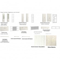 Цена указана за композицию на фото №1 (модули: Шкаф-витрина; Шкаф-витрина; Шкаф для одежды; тумба; шкаф навесной; карниз 100 - 2 шт.; полка)