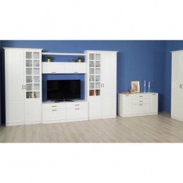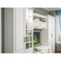 Новый Свет, знаменитый золотом и пряностями, авантюристами и первооткрывателями, обогатил мировую культуру ещё и своим особенным интерьерным стилем, воплощенным в гостиной «Ливерпуль». Сочетание лёгкой древесной структуры и светлого тёплого оттенка удачно имитируют крашеный массив. Современная фурнитура обеспечивает надёжное функционирование всех соединений. Резной карниз и броская лицевая фурнитура подчеркивают изысканность образа. Статусный вид гостиной «Ливерпуль», несомненно, не оставит равнодушными ваших гостей.