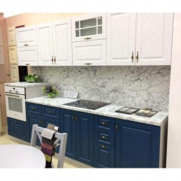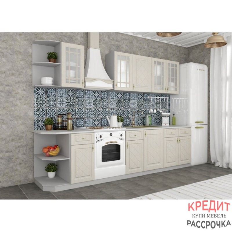 Гарнитур станет идеальным вариантом для обустройства дома, способным угодить даже самому притязательному покупателю. Фасады верхних и нижних модулей сделаны из МДФ, облицованы пленкой ПВХ с фрезеровкой.