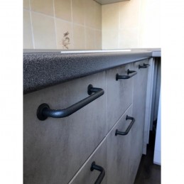 Примечание: Ручка-скоба LS 034 128 темно-серая шагрень, не входит в комплект с фасадами Штукатурка серая, Штукатурка белая, Дуб бурый.