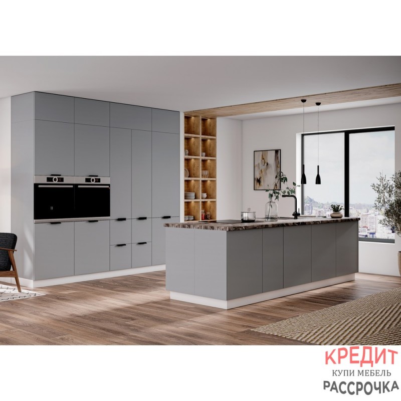 Все элементы кухонного гарнитура «Ройс» выполнены в минималистичных вариациях. За счет данной особенности рабочая зона является практически пустой и открытой для воплощения различных кулинарных задумок. Приятная слегка матовая на ощупь поверхность не требует максимальных усилий для ее уборки.