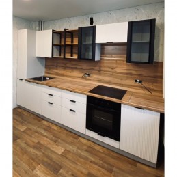 Материал корпуса: ЛДСПМатериал фасада: МДФРучка: Скоба метал (Не входит в комплект)Вертикальные фасады со стеклом ПВС / ВПВСКухонный гарнитур «Монца» – это объединение чарующего итальянского стиля и современных мебельных тенденций. Данная коллекция выделяется красивым и гармоничным дизайном, каждый элемент которой дарит эстетическое удовольствие, украшая собой любое кухонное пространство, будь то частный дом или городская квартира.