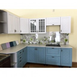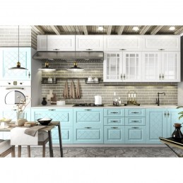 Модули на регулируемых пластиковых ножках, цоколь белого цвета. При необходимости верхние фасады можно сочетать одним цветом, нижние другим. Нижние модули не поставляются вместе со столешницей. В производстве гарнитура использованы безопасные материалы, которые не выделяют опасных веществ и безвредны для здоровья людей.