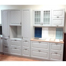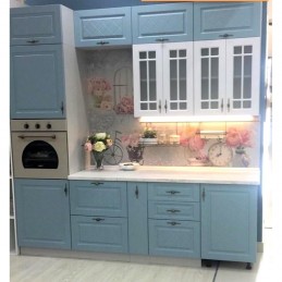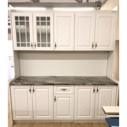 Гарнитур станет идеальным вариантом для обустройства дома, способным угодить даже самому притязательному покупателю. Фасады верхних и нижних модулей сделаны из МДФ, облицованы пленкой ПВХ с фрезеровкой.