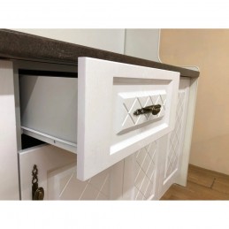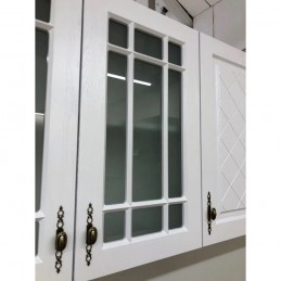 Стеклянные вставки, придающие гарнитуру изысканность и дополнительный шик.