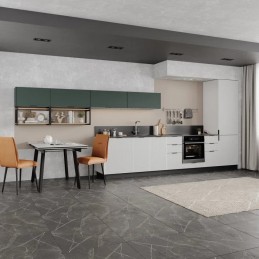 NORMA — новая линейка кухонь в пленках уникальной устойчивости. Это ПВХ пленка, которая объединила в себе преимущества премиального внешнего вида эмали и устойчивость к механическим повреждениям и агрессивным веществам от ПЭТ. Такие фасады имеют гладкую, тактильно приятную поверхность, которая полностью повторяет эффект эмали.