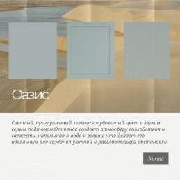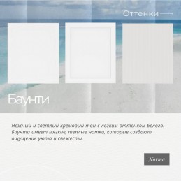 Каждый цвет этой коллекции рассказывает свою историю. «Баунти» воссоздает атмосферу необитаемого острова, где мягкий песок согревается ярким солнцем. «Вижн» символизирует бескрайние горизонты, простирающиеся в мечтах. «Блю» переносит вас к берегам, где морская гладь сливается с небом. «Оазис» — это спасительная зелень и свежесть посреди пустынного безмолвия. «Аверса» наполняет дом ощущением густого немецкого леса после дождя. «Смоки» окутывает нежным туманом, напоминая о прохладных северных лесах. Эта коллекция — идеальный выбор для тех, кто хочет привнести в свой дом не только стиль, но и частичку живой природы.