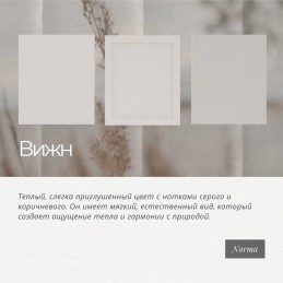 Каждый цвет этой коллекции рассказывает свою историю. «Баунти» воссоздает атмосферу необитаемого острова, где мягкий песок согревается ярким солнцем. «Вижн» символизирует бескрайние горизонты, простирающиеся в мечтах. «Блю» переносит вас к берегам, где морская гладь сливается с небом. «Оазис» — это спасительная зелень и свежесть посреди пустынного безмолвия. «Аверса» наполняет дом ощущением густого немецкого леса после дождя. «Смоки» окутывает нежным туманом, напоминая о прохладных северных лесах. Эта коллекция — идеальный выбор для тех, кто хочет привнести в свой дом не только стиль, но и частичку живой природы.