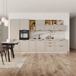 NORMA — новая линейка кухонь в пленках уникальной устойчивости. Это ПВХ пленка, которая объединила в себе преимущества премиального внешнего вида эмали и устойчивость к механическим повреждениям и агрессивным веществам от ПЭТ. Такие фасады имеют гладкую, тактильно приятную поверхность, которая полностью повторяет эффект эмали.