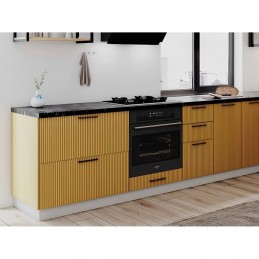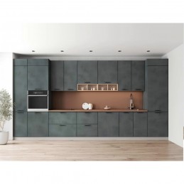 В комплект кухни не входит: пристеночный бортик, сушка, торцевые и соединительные планки, стеновая панель, петли с доводчиками, столешницы, стеновые панели с фотопечатью, ручки.