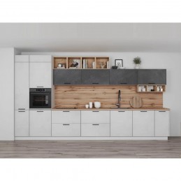 В каталоге кухни есть глубокие горизонтальные шкафы высотой 350мм и 450мм, что еще больше сможет увеличить высоту гарнитура. Цветовую гамму фасадов кухни Фенис можно комбинировать с другими кухнями ДСВ.