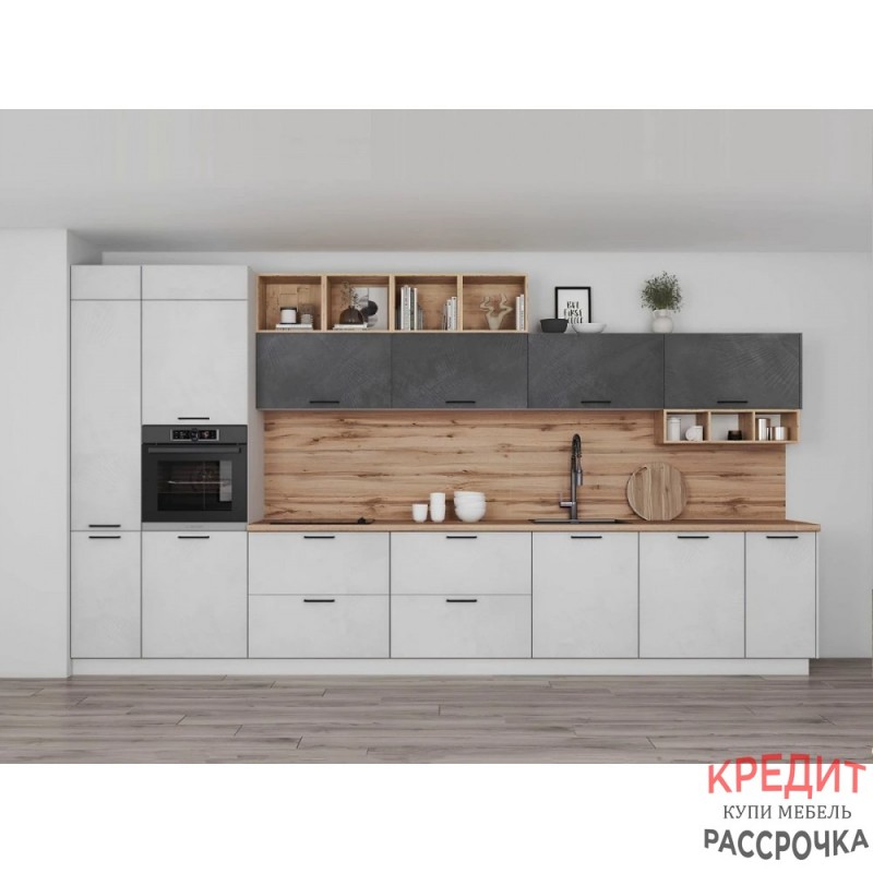 В комплект кухни не входит: пристеночный бортик, сушка, торцевые и соединительные планки, стеновая панель, петли с доводчиками, столешницы, стеновые панели с фотопечатью, ручки.