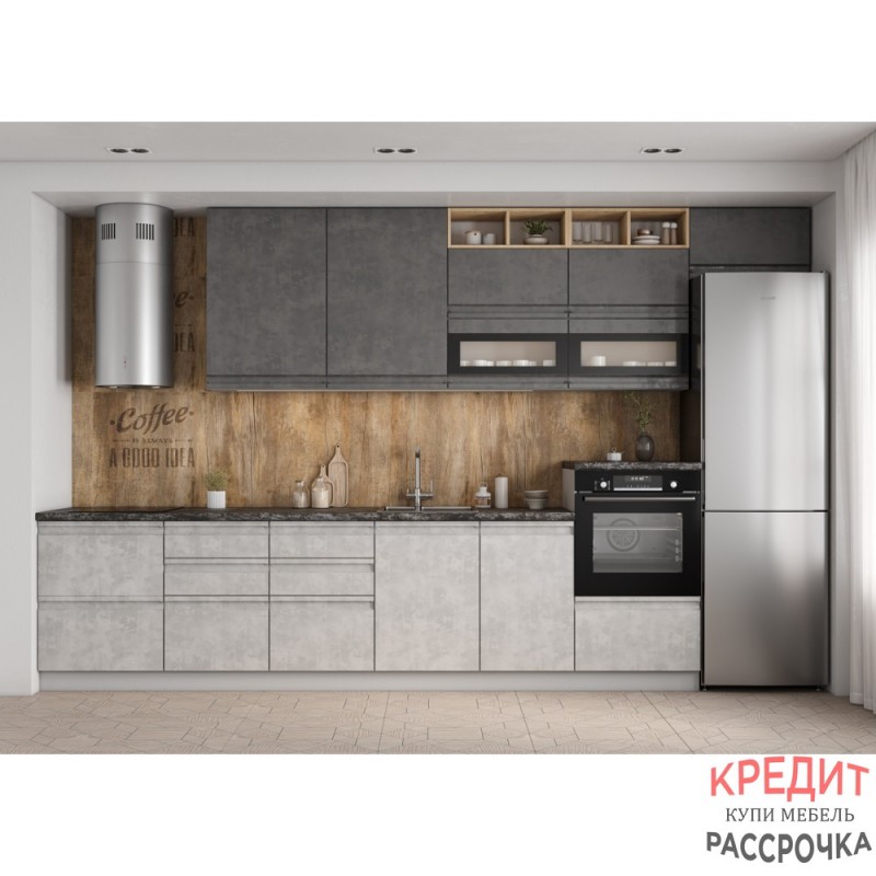 Кухня «Скала» ‑ олицетворение мощи, нестандартного дизайна и инновационных решений. Это выбор тех, кто предпочитает глубокий цвет размытым и легким оттенкам. Богатый мраморный оттенок ее поверхностей сражает насыщенностью и заставляет любоваться игрой тонких, естественных прожилок. В этом кухонном гарнитуре совершенно все, от пропорций и варианта расположения шкафов до качества фурнитуры и технологии обработки столешниц.