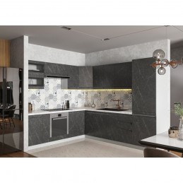 Кухня «Скала» ‑ олицетворение мощи, нестандартного дизайна и инновационных решений. Это выбор тех, кто предпочитает глубокий цвет размытым и легким оттенкам. Богатый мраморный оттенок ее поверхностей сражает насыщенностью и заставляет любоваться игрой тонких, естественных прожилок. В этом кухонном гарнитуре совершенно все, от пропорций и варианта расположения шкафов до качества фурнитуры и технологии обработки столешниц.