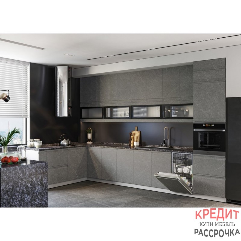 Кухня «Скала» ‑ олицетворение мощи, нестандартного дизайна и инновационных решений. Это выбор тех, кто предпочитает глубокий цвет размытым и легким оттенкам. Богатый мраморный оттенок ее поверхностей сражает насыщенностью и заставляет любоваться игрой тонких, естественных прожилок. В этом кухонном гарнитуре совершенно все, от пропорций и варианта расположения шкафов до качества фурнитуры и технологии обработки столешниц.