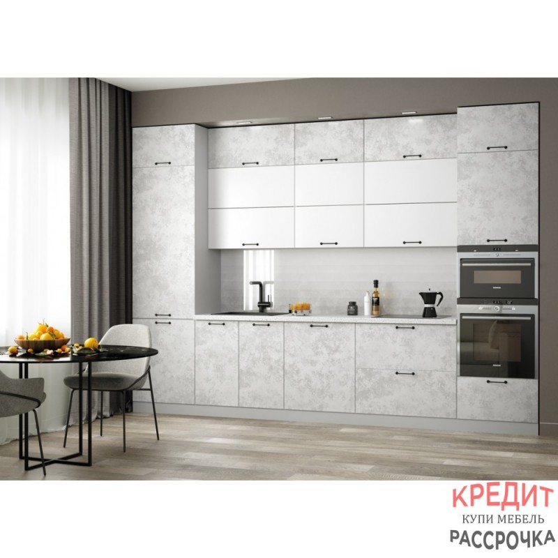 Кухня "Лофт" Бетон светлый/Штукатурка белая №17