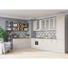 Гарнитур станет идеальным вариантом для обустройства дома, способным угодить даже самому притязательному покупателю. Фасады верхних и нижних модулей сделаны из МДФ, облицованы пленкой ПВХ с фрезеровкой.