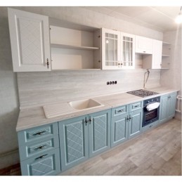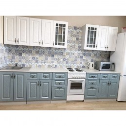 Модули на регулируемых пластиковых ножках, цоколь белого цвета. При необходимости верхние фасады можно сочетать одним цветом, нижние другим. Нижние модули не поставляются вместе со столешницей. В производстве гарнитура использованы безопасные материалы, которые не выделяют опасных веществ и безвредны для здоровья людей.
