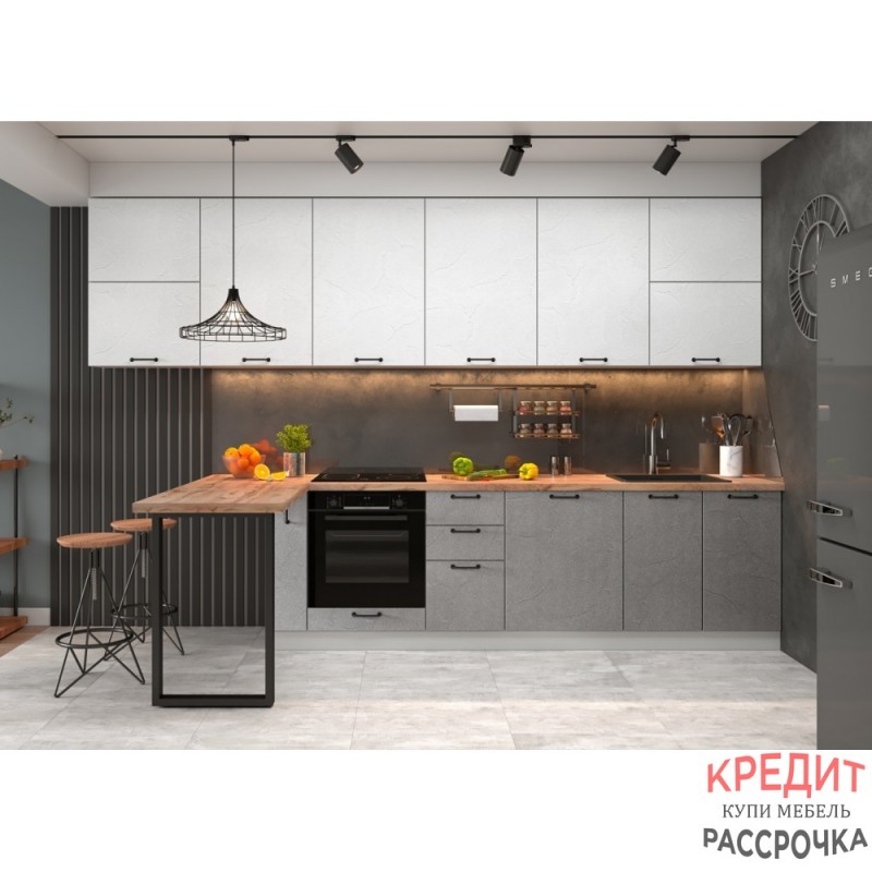 Кухня "Лофт" Штукатурка серая/Штукатурка белая №23