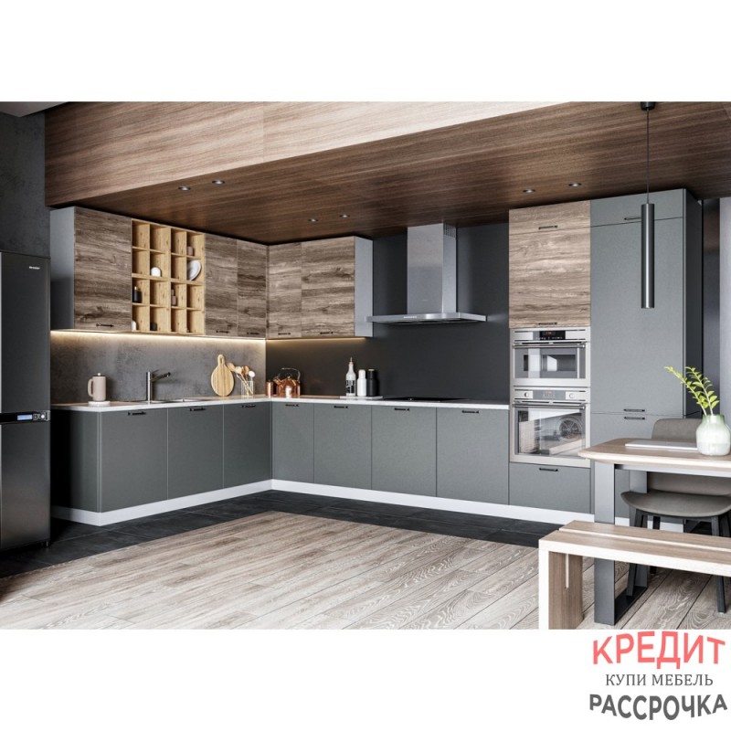 Кухня "Лофт" Бетон тёмный/Дуб бурый №21