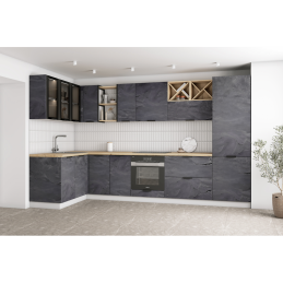 В комплект кухни не входит: пристеночный бортик, сушка, торцевые и соединительные планки, стеновая панель, петли с доводчиками, столешницы, стеновые панели с фотопечатью, ручки.