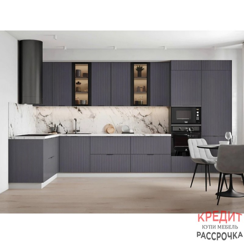 В комплект кухни не входит: пристеночный бортик, сушка, торцевые и соединительные планки, стеновая панель, петли с доводчиками, столешницы, стеновые панели с фотопечатью, ручки.