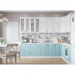 Гарнитур станет идеальным вариантом для обустройства дома, способным угодить даже самому притязательному покупателю. Фасады верхних и нижних модулей сделаны из МДФ, облицованы пленкой ПВХ с фрезеровкой.