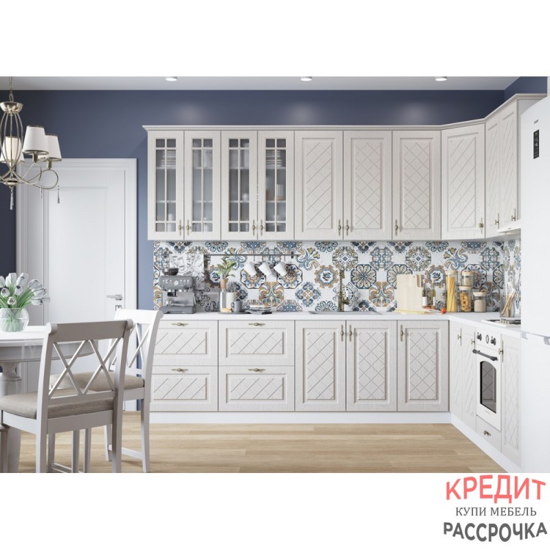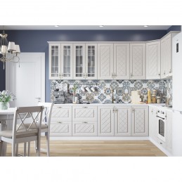 Гарнитур станет идеальным вариантом для обустройства дома, способным угодить даже самому притязательному покупателю. Фасады верхних и нижних модулей сделаны из МДФ, облицованы пленкой ПВХ с фрезеровкой.