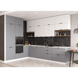 Материал корпуса: ЛДСПМатериал фасада: МДФРучка: Скоба метал (Не входит в комплект)Вертикальные фасады со стеклом ПВС / ВПВСКухонный гарнитур «Монца» – это объединение чарующего итальянского стиля и современных мебельных тенденций. Данная коллекция выделяется красивым и гармоничным дизайном, каждый элемент которой дарит эстетическое удовольствие, украшая собой любое кухонное пространство, будь то частный дом или городская квартира.