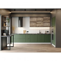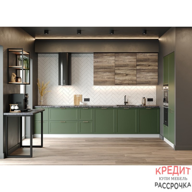 Кухня «Квадро» в цветах оливково-зеленый или лунный свет великолепно впишется в кухонный интерьер в стиле хай-тек. Корпусная кухонная мебель с фасадами глубоких насыщенных оттенков античное золото, шоколадная кожа, черника легко вольется в модерновую симфонию чистых линий, лаконичных форм и ярких цветовых акцентов. Стильная кухня «Квадро» также подойдет для оформления помещений в стиле лофт и индастриал.