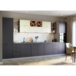 Кухонный гарнитур «Квадро» — удачное воплощение скандинавского стиля, прекрасно адаптированное к вкусам современных хозяек. Открытые полки и подвесные шкафчики с остеклением вносят в облик кухонного гарнитура нотки легкости и воздушности.