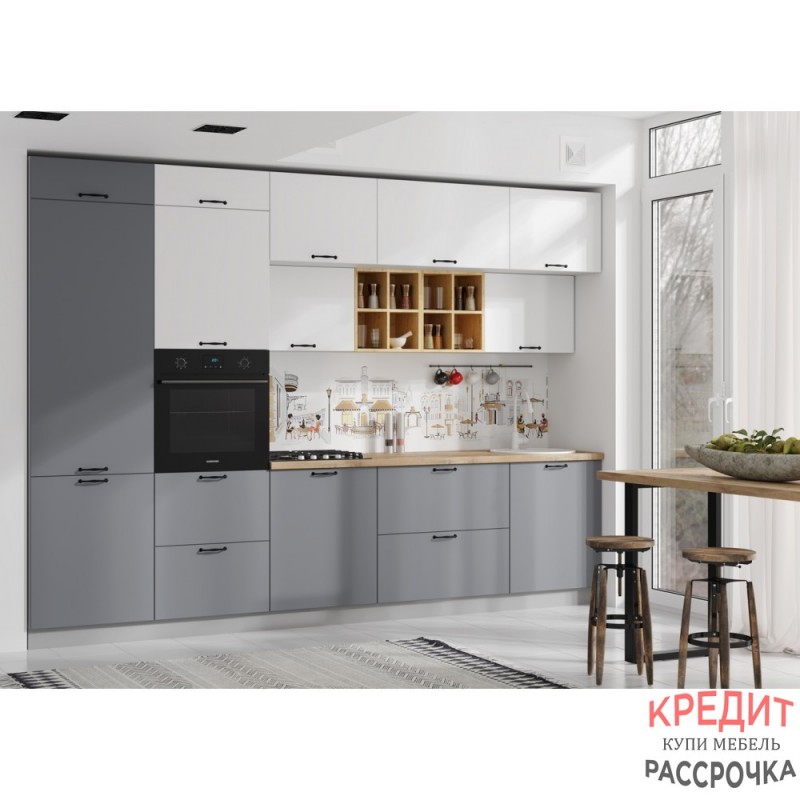 Кухня "Ройс" Серый эмалит/Белый софт №37