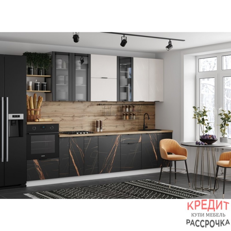 Кухня "Ройс" Кварц чёрный/Кварц бежевый №14