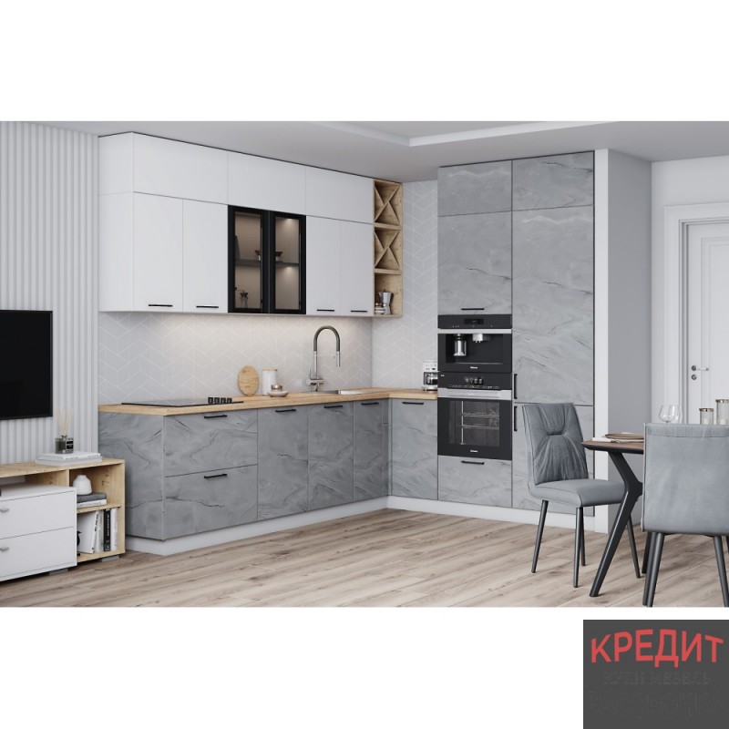 В комплект кухни не входит: пристеночный бортик, сушка, торцевые и соединительные планки, стеновая панель, петли с доводчиками, столешницы, стеновые панели с фотопечатью, ручки.